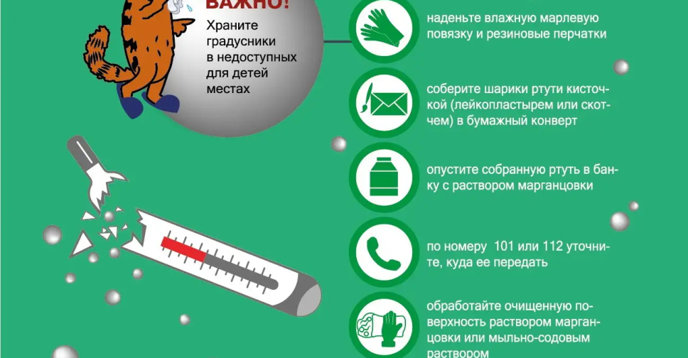 Правила безопасности, если разбился ртутный градусник