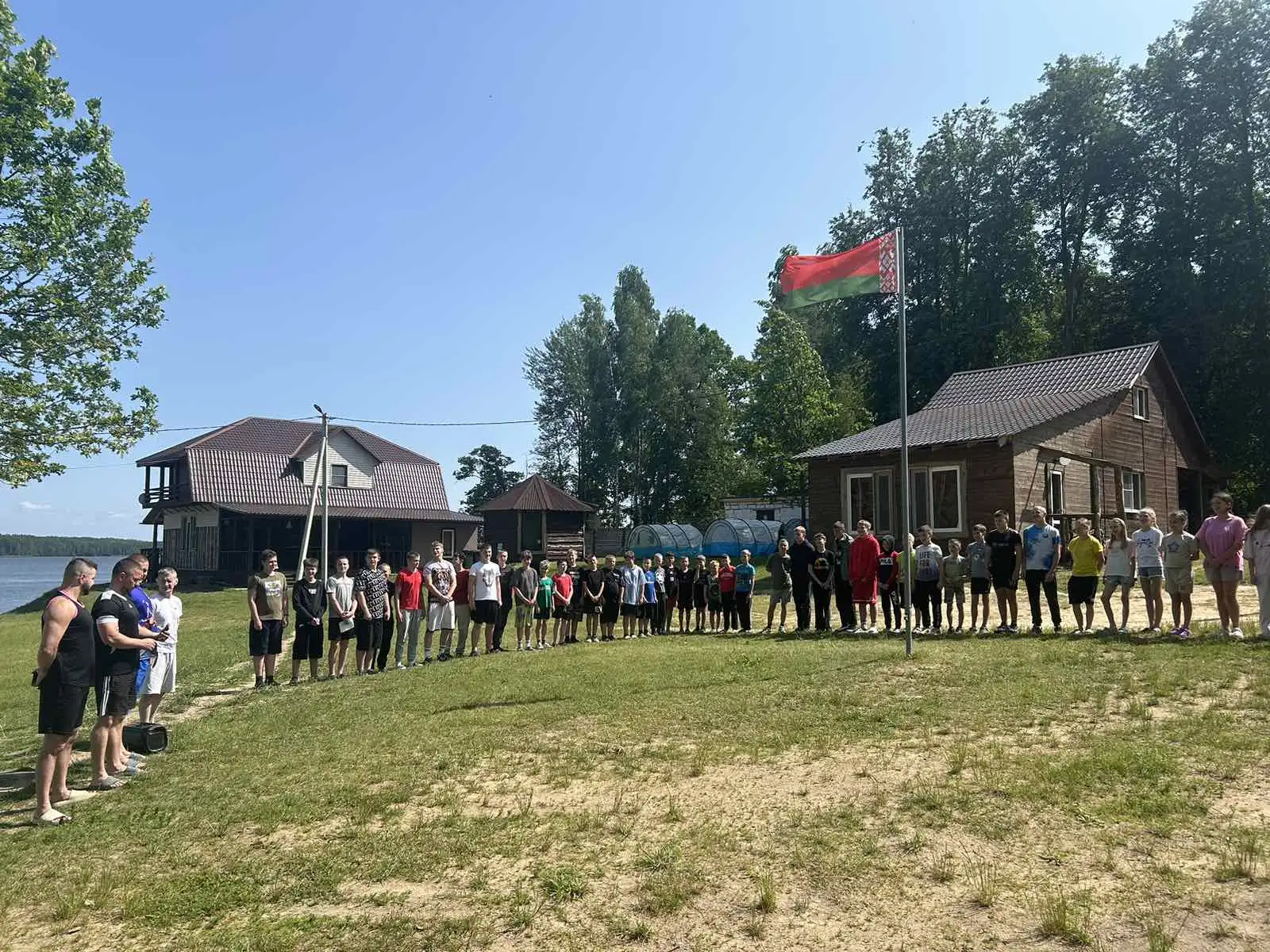 Торжественное открытие лагерной смены с поднятием Государственного флага и исполнением Государственного гимна Республики Беларусь прошло в спортивно-оздоровительном палаточном непередвижном лагере "Отдых на поляне"