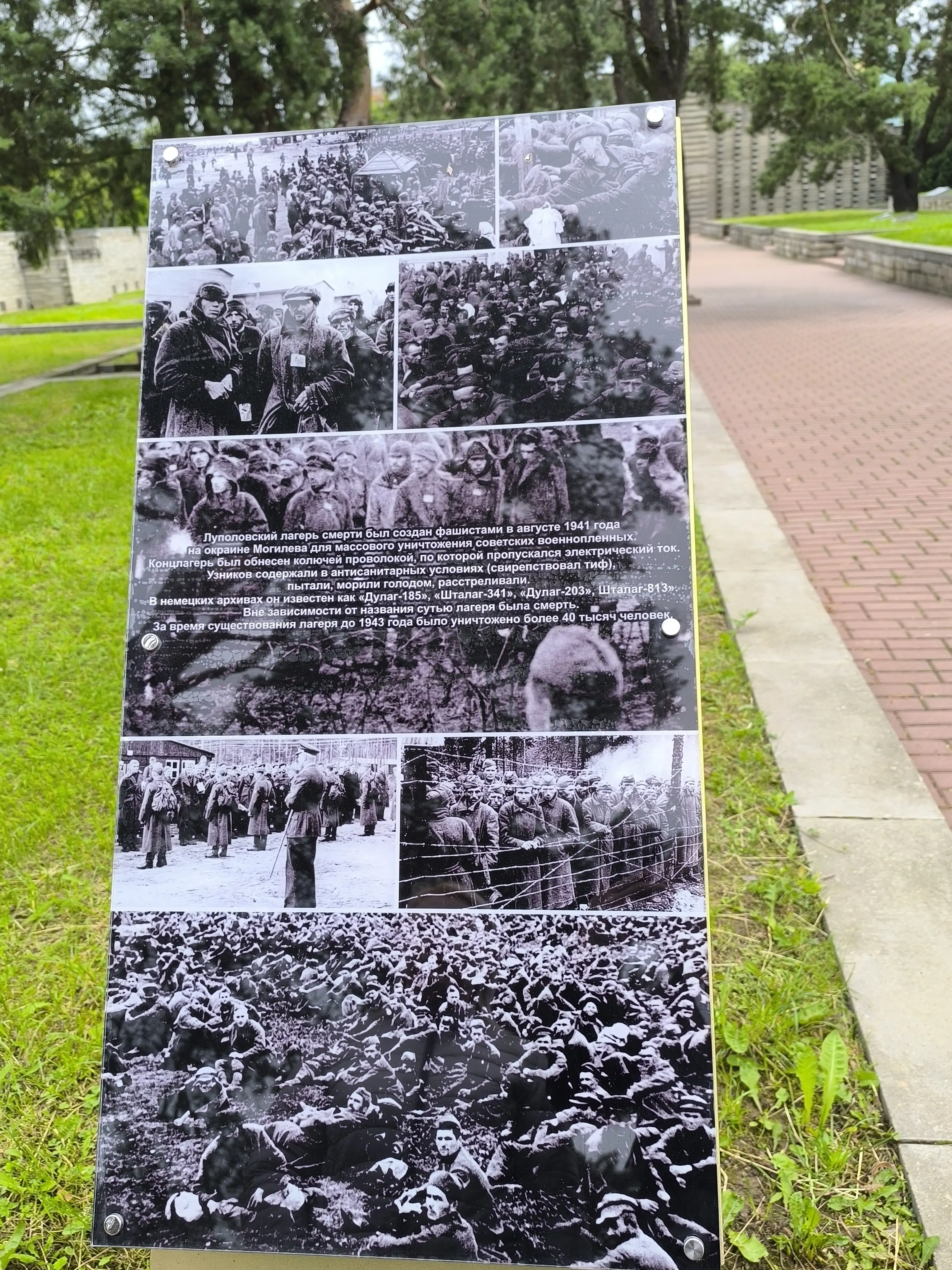 Комплекс задумывался так, чтобы воображение возвращало нас в страшное время, когда городскую окраину фашисты превратили в настоящий ад. В шталаге морили голодом, пытали, расстреливали советских военнопленных, подпольщиков. Обнесенный колючей проволокой, через которую был пущен электрический ток, он стал кладбищем для тысяч людей.